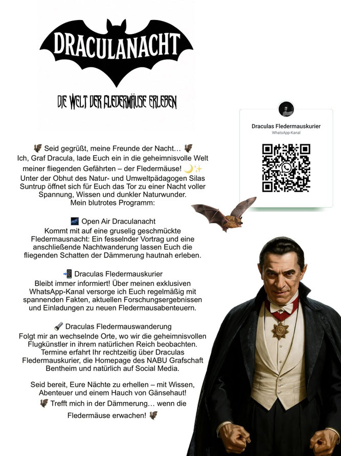 Mehrmals im Jahr veranstaltet der Natur- und Umweltpädagoge Fledermaus- Exkursionen. Inzwischen geht die "Dracula Tour" von der Niedergrafschaft bis nach Ostfriesland.